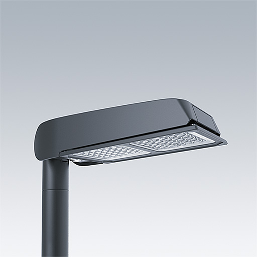 Lanterne d’éclairage routier LED de taille Large avec 60 LED et une optique Route étroite 700mA. Electronique,Classe électrique I, IP66, IK08. Corps : aluminium (EN AC-44300) Moulage sous pression, gris anthracite 900 sablé thermopoudré. Fermeture : verre plat trempé. Cadre blanc avec un bord gravé. Vis : Acier inox, traitement Ecolubric®. Livré avec un adaptateur d’emmanchement Ø 76 mm qui convient pour montage top (inclinaison 0°/5°/10°) ou latéral (inclinaison -20°/-15°/-10°/-5°/0°). Equipé d'un 50% circuit de réduction de puissance, qui entre en vigueur 3 heures avant et 5 heures après un minuit calculé. Il peut être désactivé à l'installation avec un interrupteur interne facilement accessible. Livré avec LED 4 000 K. Protection contre la surtension : mode commun à une impulsion 10 kV et mode commun multi-impulsions 8 kV et mode différentiel multi-impulsions 6 kV. Si un système DALI permanent est connecté, mode différentiel et mode commun multi-impulsions 6 kV.