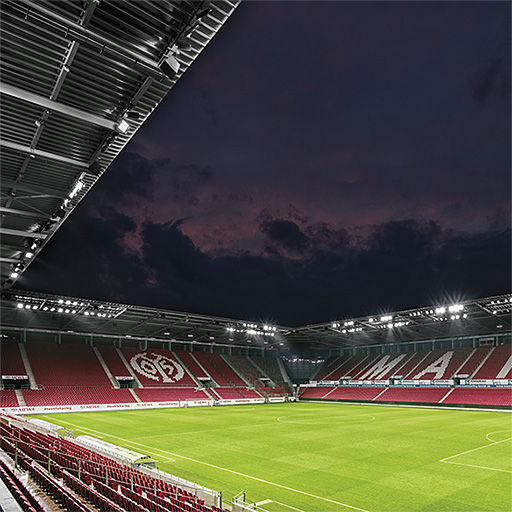 Projecteur LED haute puissance avec distribution lumineuse Optique 1 : faisceau étroit; Optique 2 : asymétrique 60°; Optique 3 : asymétrique 60° de 456 LED. Appareillage externe, Fourni uniquement par Thorn Lighting, à commander séparément (courant de transmission maximum 1050 mA) et câblage via câble de type H07 RN-F et mini-diamètre de 13 mm. Classe électrique I, IP66, IK08. Dissipateur thermique : Moulage sous pression aluminium thermopoudré gris foncé (similaire à RAL 7043). Support de fixation et cadre : gris foncé (similaire à RAL 7043). Fermeture : 4 mm transparent verre. Fourche montée à l’aide des points de fixation disponibles (une vis M20 et deux vis M14). Fonctionnement à faibles papillotements (< 1 %) adapté à une diffusion TV haute définition. Livré avec LED 4 000 K