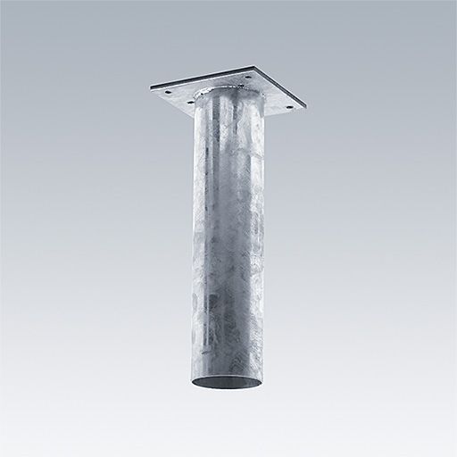 Adaptateur à base au sol pour ancrage de bornes avec plaque bridée. Boulons non-fournis.