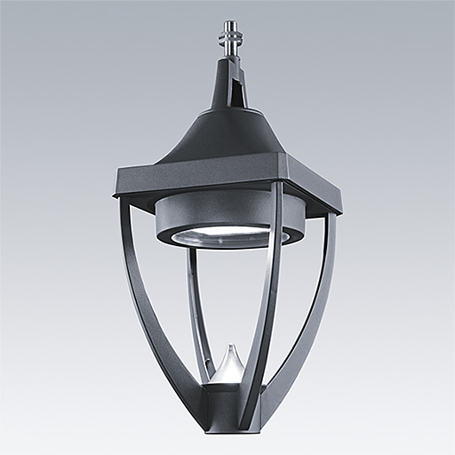 Lanterne LED patrimoine moderne suspension avec optique fermée. Electronique. Classe électrique I, IP65, IK08. Corps : aluminium Moulage sous pression thermopoudré gris 900, finition texturé (close to RAL 7043). Boîtier : verre trempé plat. Protection contre les surtensions : 10 kV en mode commun single pulse et 8 kV en mode commun multipulse; 6 kV en mode différentiel multipulse. Si un système DALI est connecté: 6 kV en mode mode commun et mode différentiel multipulse. Livré avec LED 4 000 K.