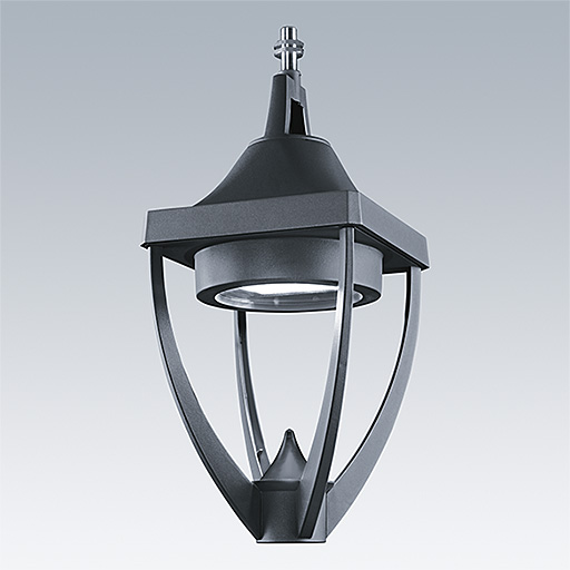 Lanterne LED patrimoine moderne Suspendu via 34G. avec optique fermée. Electronique. Classe électrique II, IP65, IK08. Corps : aluminium Moulage sous pression thermopoudré gris 900, finition texturé (close to RAL 7043). Boîtier : verre trempé. Protection contre les surtensions : 10 kV en mode commun single pulse et 8 kV en mode commun multipulse; 6 kV en mode différentiel multipulse. Si un système DALI est connecté: 6 kV en mode mode commun et mode différentiel multipulse. Livré avec LED 3 000 K.