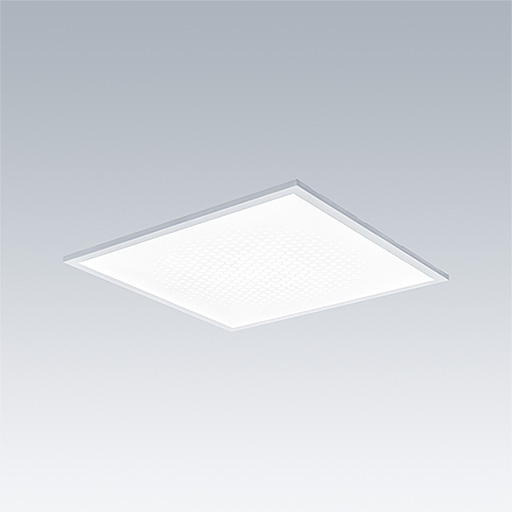 Luminaire LED encastré/plafonnier/suspension. Driver, Flux fixe. Classe électrique II, IP20, Résistance aux impacts : IK03. Corps : tôle d'acier, blanc (similaire à RAL9016). Diffuseur : Polycarbonate (PC) anti-UV. Optique confort hexagonale. Connexion électrique via borniers à poussoirs, avec repiquage possible.