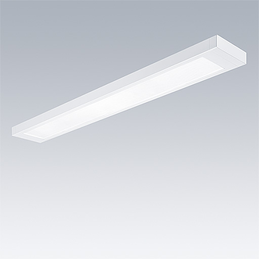 Luminaire de faible épaisseur, plafonnier avec distribution directe. non gradable Electronique. corps : tôle d'acier, thermopoudré blanc (similaire à RAL9016). Embouts : tôle d'acier thermopoudré blanc (similaire à RAL9016). Guidage de la lumière avec une optique LRO multicouche rétro-éclairée en PMMA permettant de réduire la luminance à UGR < 19, système optique fermé pour éviter les dommages dus aux décharges électrostatiques, idéal pour les écoles et les bureaux. Classe électrique I, IP20, Résistance aux impacts : IK03. Raccordement électrique par bornier à poussoirs. Livré avec LED 4 000 K.