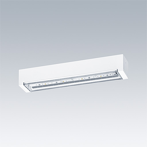 Luminaire de secours à LED Slim IP65 pour un montage apparent, au mur ou au plafond ; avec adaptateur à clipser pour un montage apparent au mur fourni, montage encastré au plafond possible avec cadre d'encastrement en option ; Luminaire pour alimentation centralisée 48 V DC de l'éclairage de sécurité pour une surveillance individuelle du luminaire par Powerline couplé avec le système nBox, niveau d'intensité réglable; Possibilité de fonctionnement en régime non permanent et permanent ; ; ; Longueur du câble entre la source d'alimentation de secours et le dernier luminaire : 200 m ; avec optique à clipser optimisée en option pour les voies d'évacuation et les zones ouvertes à partir de hauteurs de montage plus élevées ; informations à clipser pour une vision à une distance maximale de 23 m et de 30 m permettant une transformation en un luminaire à pictogramme ; boîtier en polycarbonate blanc ; vasque en polycarbonate transparent ; montage sans outils par simple « clic » après la mise en place de la base du boîtier ; bornier à montage rapide, câblage traversant possible jusqu'à 2,5 mm² ; aucun entretien grâce à la technologie LED ; durée de vie de 50 000 h à flux lumineux constant ; alimentation électrique ; Puissance du luminaire: 2,4 W ; degré de protection : IP65, classe de protection : SC2 ; résistance aux impacts : IK03 ; Dimensions : 336 x 54 x 59 mm ; poids : 0,56 kg