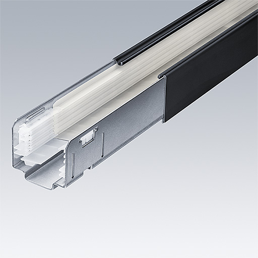 Odcinki szynoprzewodu wykonane z walcowanej blachy stalowej pomalowanej proszkowo czarny lakierem poliestrowym. 5 linii zasilania z sieci elektroenergetycznej (5 x 2,5 mm² / 16 A), 2 x 2 przewodniki (4 x 1,5 mm² / 10 A) do połączenia oświetlenia awaryjnego z wykorzystaniem dwóch niezależnie izolowanych obwodów oraz 2 przewody linii sterującej (2 x 1,5 mm² / 10 A). Połączenie bez narzędzi przy pomocy zestawu zasilania elektrycznego.