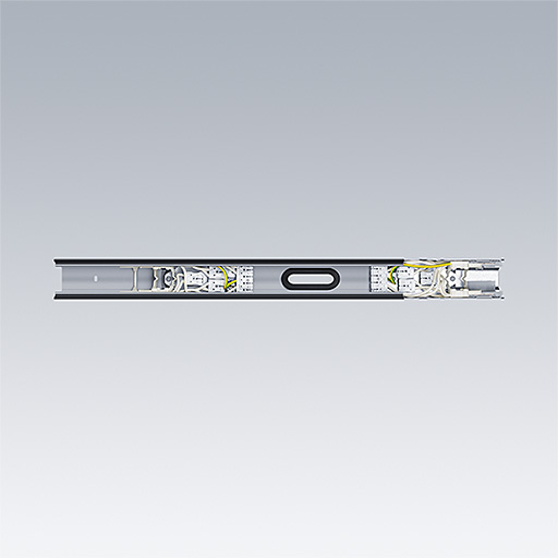 Zasilanie centralne L500 w kolorze czarny, wykonane z walcowanej blachy stalowej, służące do centralnego połączenia elektrycznego lub centralnej dystrybucji mocy w ciągłym szynoprzewodzie. 2 zestawy z wtykowymi listwami połączeniowymi dla 5 linii zasilania z sieci elektroenergetycznej, 2 x 2 kabli oświetlenia awaryjnego i 2 linii sterujących. Ochrona przed dotknięciem części przewodzących prąd. Zasilanie centralne Contus może być zakryte końcami dwóch opraw Contus o długości co najmniej 1000 mm lub podłużnymi osłonami.