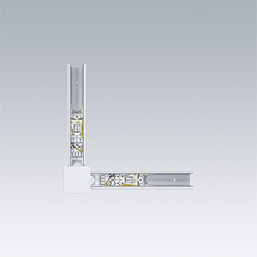 Mechaniczne i elektryczne złącze o kształcie L w kolorze bialy. Ma dwa zakończenia żeńskie do złącza mechanicznego i 2 grupy listew zaciskowych do wejścia lub wyjścia elektrycznego.