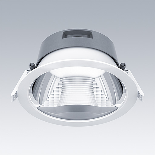 Wysokowydajny i wytrzymały downlight LED z o niskiej wysokości z rozsyłem asymetrycznym zapewniającym pionowe oświetlenie. Przeznaczony do montażu za pomocą zatrzasków sprężynowych w sufitach o grubości od 1 do 40 mm w otworach montażowych Ø 200 mm. Oddzielny, wyposażony we wtyczkę Stały prąd na wyjściu zasilacz LED, z funkcją regulacji DC, zakres 15 – 100%, możliwość konfiguracji za pomocą aplikacji NFC. Możliwe okablowanie przelotowe. Obudowa: aluminium odlewane ciśnieniowo zapewniające dobre odprowadzanie ciepła i w ponad 90% nadające się do recyklingu. Klosz: poliwęglan, gładki odbłyśnik w kolorze wykończenie na wysoki połysk, co poprawia kontrolę olśnień w zastosowaniach biurowych. Odbłyśnik i pierścień wykończeniowy: wysokiej jakości poliwęglan o wysokim połysku. Klasa bezpieczeństwa II, klasa szczelności IP54_IP20.. Dostarczana z wyposazone w LED 3000K