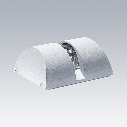 Axyl Etch, a wall mounted, architectural LED luminaire for decorative facade lighting, with elliptical beam distribution. Class III electrical.. DMX controllable control gear LED driver. IP65, Impact strength: IK10. Housing: Die-cast aluminium, powder coated textured white (close to RAL9010). Working ambient temperature: -20°C to +40°C. Complete with RGBW colour change LEDs..