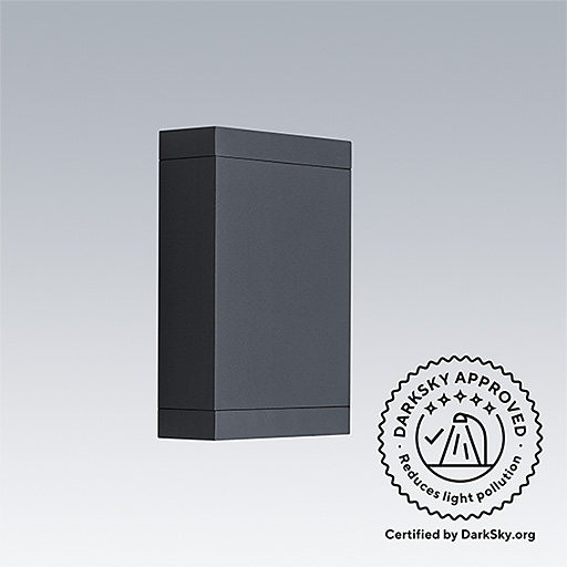 Axyl Glow, a wall mounted, architectural LED luminaire for decorative facade lighting, with wide beam distribution. Class III electrical. DALI-2 dimmable Remote LED driver. IP65, Impact strength: IK06. Housing: Die-cast aluminium, powder coated textured anthracite. Working ambient temperature: -20°C to +50°C. Complete with 2700K LED.
