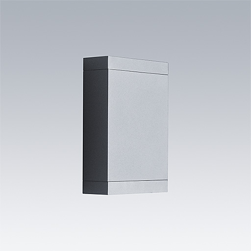 Axyl Glow, a wall mounted, architectural LED luminaire for decorative facade lighting, with wide beam distribution. Class III electrical. DALI-2 dimmable Remote LED driver. IP65, Impact strength: IK06. Housing: Die-cast aluminium, powder coated textured grey (RAL9006). Working ambient temperature: -20°C to +50°C. Complete with 4000K LED.