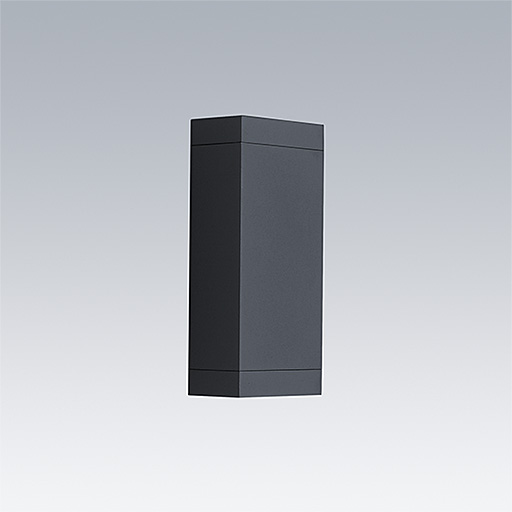 Axyl Glow, a wall mounted, architectural LED luminaire for decorative facade lighting, with wide beam distribution. Class II electrical.. Fixed output LED driver. IP65, Impact strength: IK06. Housing: Die-cast aluminium, powder coated textured anthracite. Working ambient temperature: -20°C to +50°C. Complete with 4000K LED..
