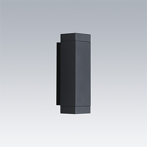 Axyl Glow, a wall mounted, architectural LED luminaire for decorative facade lighting, with wide beam distribution. Class II electrical.. Fixed output LED driver. IP65, Impact strength: IK06. Housing: Die-cast aluminium, powder coated textured anthracite. Working ambient temperature: -20°C to +50°C. Complete with 3000K LED..