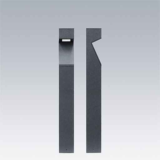 Axyl Geo, a free-standing, decorative LED bollard with asymmetrical distribution. Class I electrical.. DALI-2 dimmable LED driver. , IP65, Impact strength: IK06. Housing: Die-cast aluminium, powder coated textured anthracite. Working ambient temperature: -20°C to +45°C. Complete with 4000K LED..