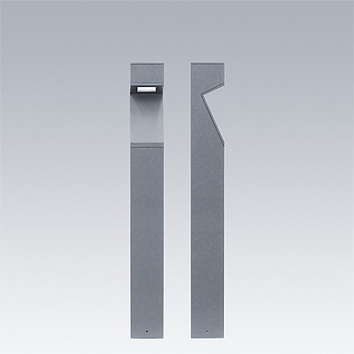 Axyl Geo, a free-standing, decorative LED bollard with asymmetrical distribution. Class I electrical.. DALI-2 dimmable LED driver. , IP65, Impact strength: IK06. Housing: Die-cast aluminium, powder coated textured grey (RAL9006). Working ambient temperature: -20°C to +45°C. Complete with 3000K LED..