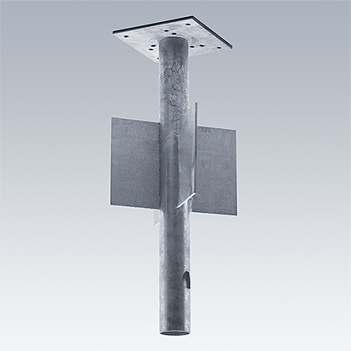 Adapter w formie wspornika służący do montażu słupka ze stopą w gruncie. Dostarczany bez śrub.